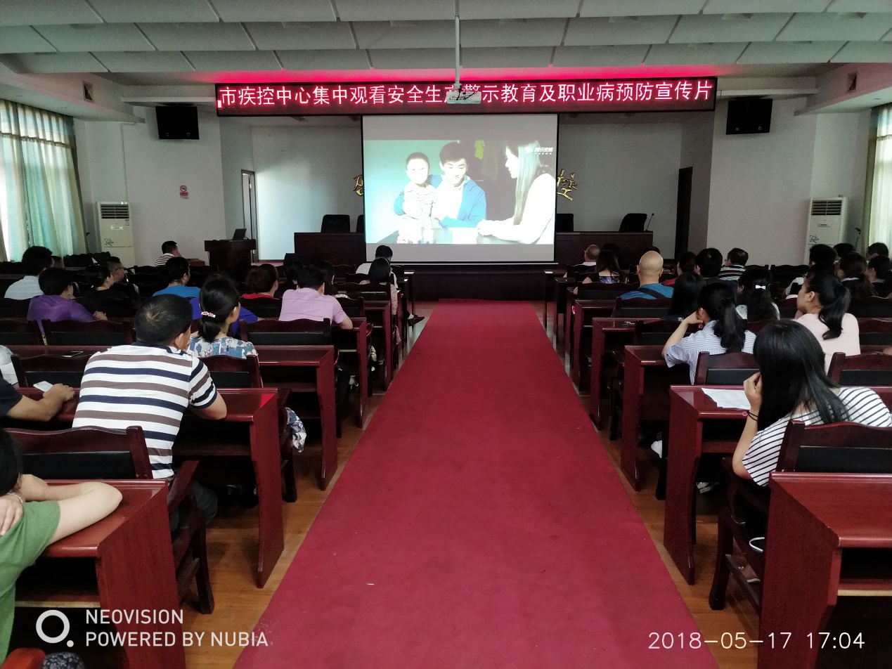 5月17日下午,为贯彻落实全省安全生产警示教育暨安全监管“强执法、防事故”行动电视电话会议精神,邵阳市疾病预防控制中心组织全体干部职工集中观看了湖南安全生产重大事故及职业病预防宣传警示教育片《牢牢绷紧防范安全风险这根弦》、《幸福毁于尘埃》。