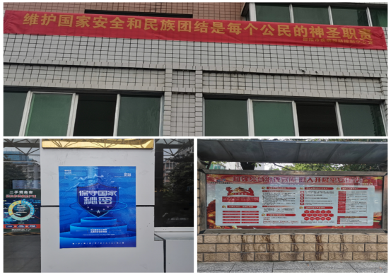 营造气氛广泛宣传。通过悬挂横幅,电子显示屏滚动屏播放国家安全知识,利用QQ群、微信群等多种途径向全体干部职工及广大群众广泛宣传有关国家安全的内容,着力营造“国家安全,人人有责”的浓厚社会氛国,进步增强全民防范意识, 推动全社会形成维护国家安全的强大合力。