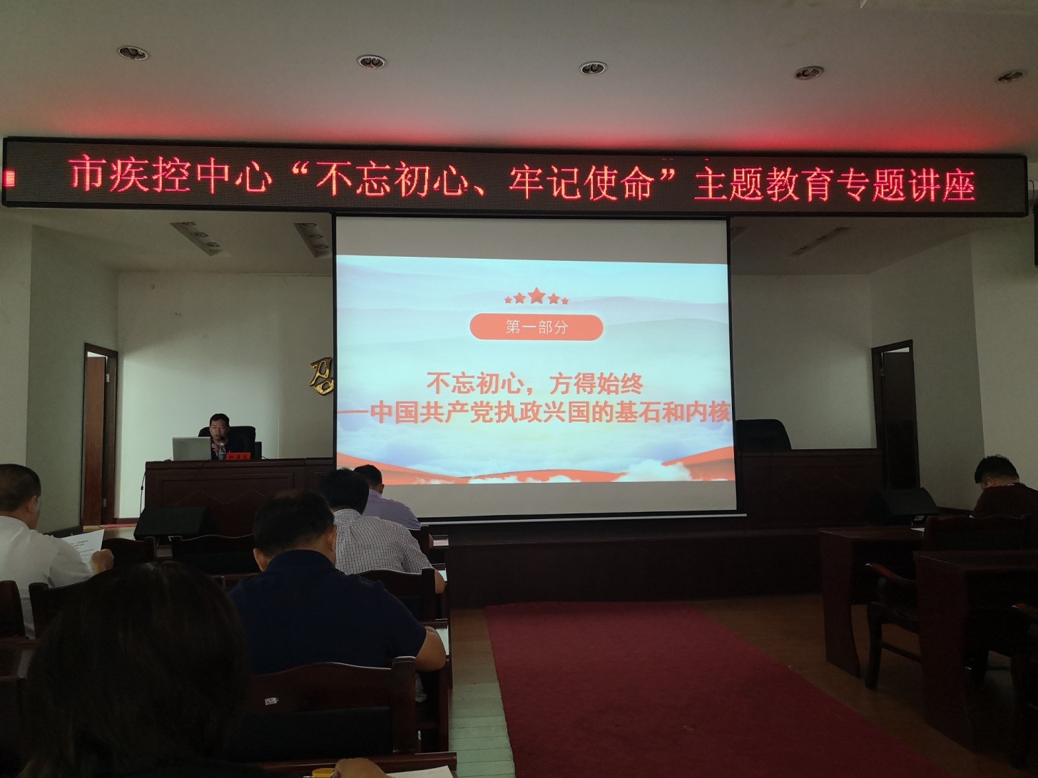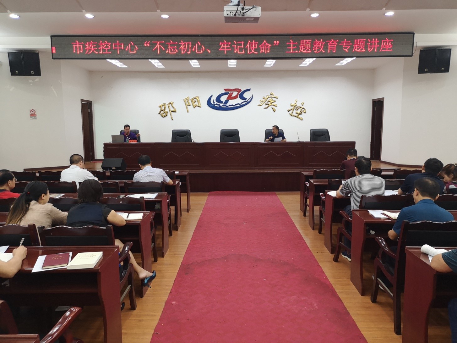9月25日上午,邵阳市疾控中心在八楼会议室举办“不忘初心、 牢记使命”主题教育专题讲座,邵阳市委党校教务处处长姚海波教授给大家上了一节名为“坚守初心、坚定理想信念,做合格共产党员“的专题党课,中心全体党员、副科以上干部参加了专题讲座。