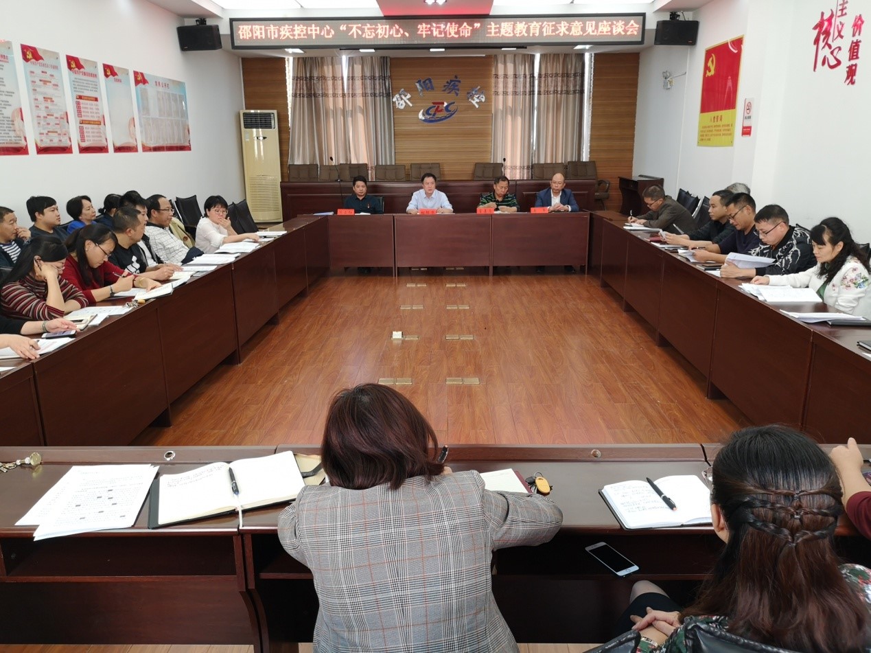 为扎实推进“不忘初心、牢记使命”主题教育,邵阳市疾病预防控制中心于2019年10月21日下午召开“不忘初心、牢记使命”主题教育工作征求意见座谈会。中心班子成员、各党支部书记、各科室主要负责人、两代表一委员、群众代表等参加了会议。