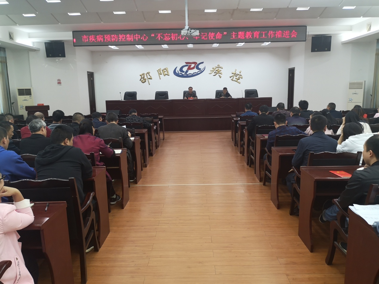 11月12日下午,邵阳市疾控中心在八楼会议室召开“不忘初心、牢记使命”主题教育工作推进会,中心党委书记、主任胡邵华主持会议,中心全体党员参加会议。