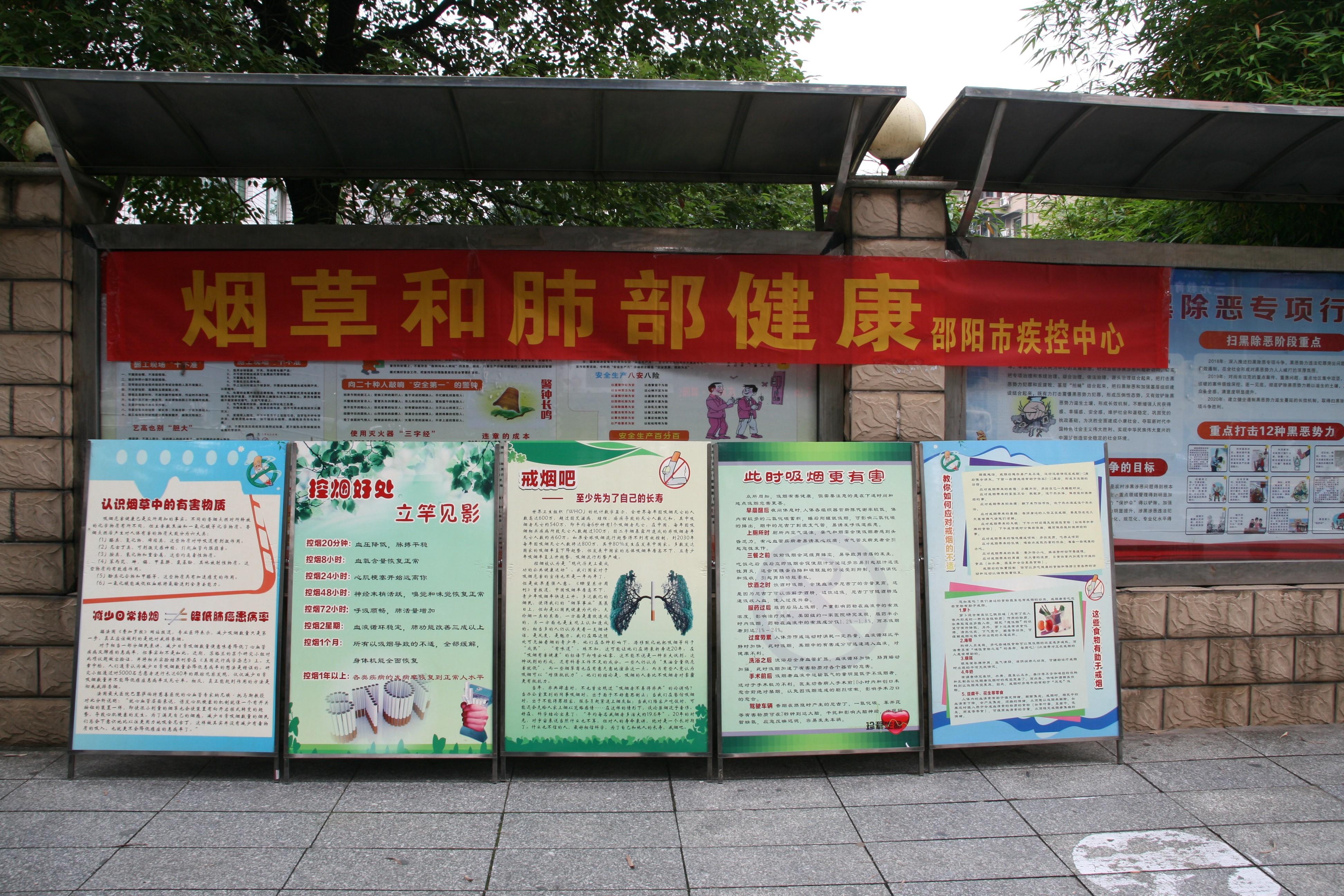 本次活动,为营造良好的宣传氛围,积极组织工作人员参加活动,精心布置现场,活动现场悬挂主题横幅,展出包括烟草危害、戒烟控烟相关防止等多块宣传展板;在宣传点活动现场宣传讲解、发放资料、接受咨询等方式对广大市民进行耐心宣教;进社区张贴海报并发放烟草危害及戒烟控烟知识宣传单、折页、手册共计1000余份。还在“邵阳市疾控中心”网页和微信公众号平台上编辑上传宣传活动内容和控烟相关知识,以达到达到广泛宣传效果。