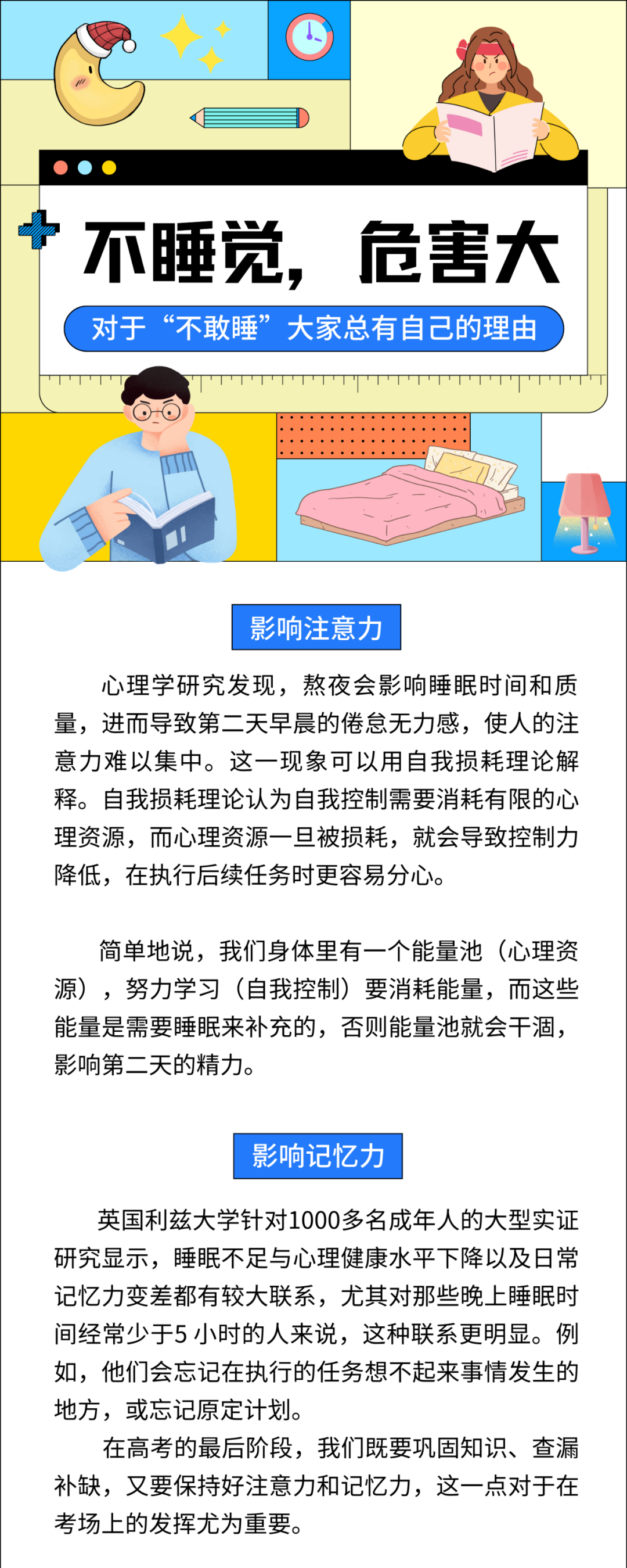 一是“不想睡”,二是“想睡睡不着”,这让身体和精神都很疲惫。进入6月,高三的同学之间常出现这样的对话: