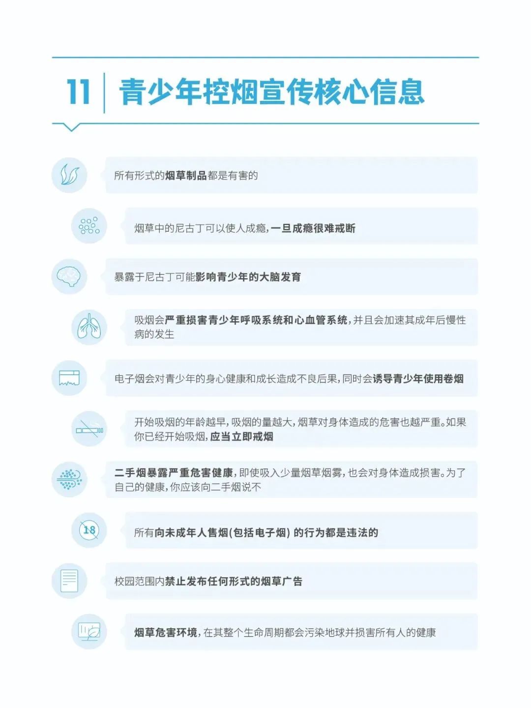 ??所有烟草制品都是有害的??烟草中的尼古丁可以使人成瘾??开始吸烟年龄越小,发病风险越高(来源:中国疾控中心)