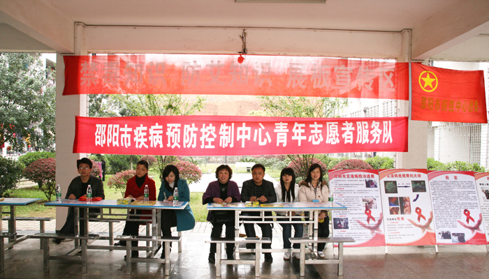 2011年4月11日,中心团委邀请性病艾滋病防治科、健康教育科联合邵阳医专团委在医专校园内布置好桌椅,挂好横幅,设立防艾咨询站点进行防艾知识宣传。