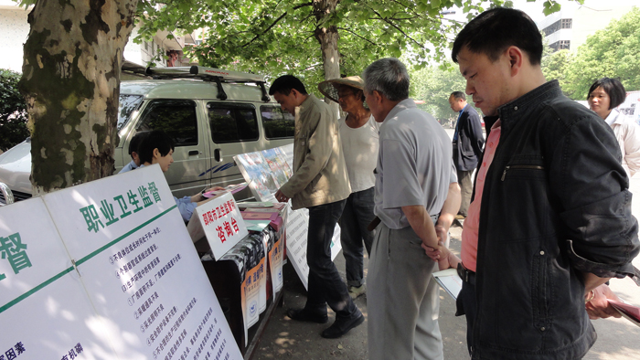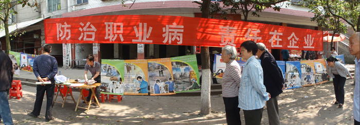 根据省卫生厅、人力资源社会保障厅、国家安全生产监管局、总工会关于开展职业病防治法宣传周活动的通知要求,4月24至5月1日,在全市开展了以“关爱农民工职业健康”为主题的宣传周活动,市卫生局、市疾控中心领导、中心劳动卫生科、健康教育科、市卫卫监所积极开展宣传活动。