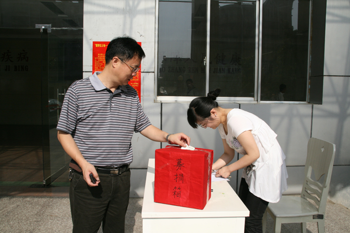 5月19日中心团委在双拥路疾控大楼和西湖路门诊两处设募捐点,共有64名爱心人士献爱心捐款,筹得善款1200元。