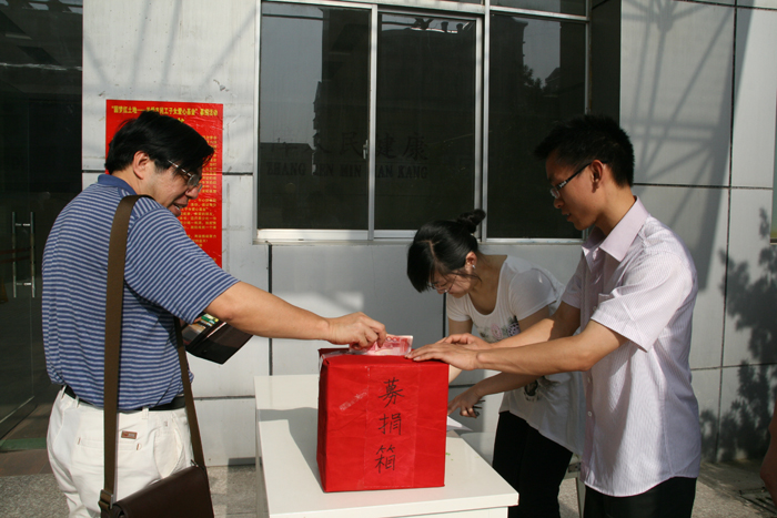 中心主任胡邵华率先垂范,关心支持募捐活动 摄影:黄中