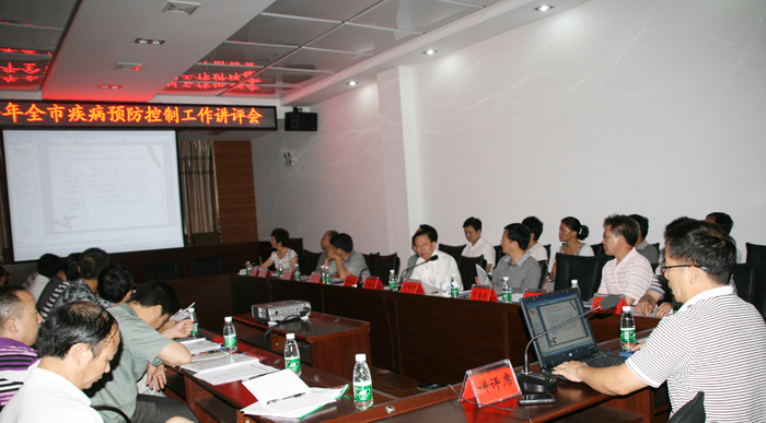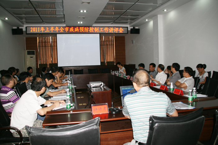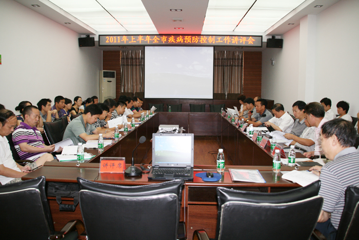 2011年8月23日,全市上半年疾病预防控制工作讲评会在本中心五楼多媒体会议室召开。会议由市CDC党委书记、兼卫生局副局长姚湘武主持,副主任肖善良、粟兴、岳军对各自分管的传染病、地方病、寄生虫病、卫生应急、免疫规划,艾滋病、结核病、职业卫生,食品安全风险监测和卫生监测、检验、质量管理、健康教育、慢病学校卫生等面上疾控工作上半年的开展情况进行了详细讲评。讲评在肯定成绩的同时对存在的问题和不足进行了认真分析。质量管理科吴萍科长就今年完成的市对县级首轮绩效考核进行了总结讲评,并分析了存在的一些主要问题。