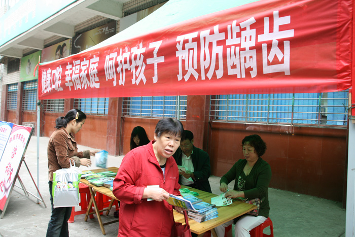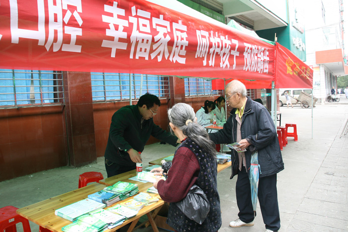 今年“爱牙日”的主题为“健康口腔,幸福家庭”,副主题为“呵护孩子,预防龋齿”,旨在发挥家庭优势,提高家庭成员口腔保健意识及对孩子口腔健康的关注程度。宣传活动通过悬挂宣传横幅、展出宣传版面、发放宣传材料、免费咨询等方式向市民宣传口腔健康的标准、口腔保健基本内容、龋齿对儿童的危害、儿童龋齿的预防方法、儿童口腔窝沟封闭等知识。