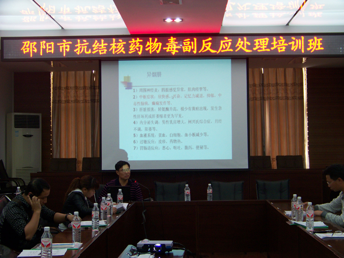 秋风送爽,丹桂飘香,10月19日,“邵阳市结核病防治例会暨举办抗结核毒副反应处理培训班”在市疾控中心五楼会议室召开。各县(市、区)疾控中心结防科科主任及医师共40余人参加了会议。市疾控中心粟兴副主任主持会议。本次会议及培训邀请到湖南省胸科医院内一科科主任黄移生教授讲学。