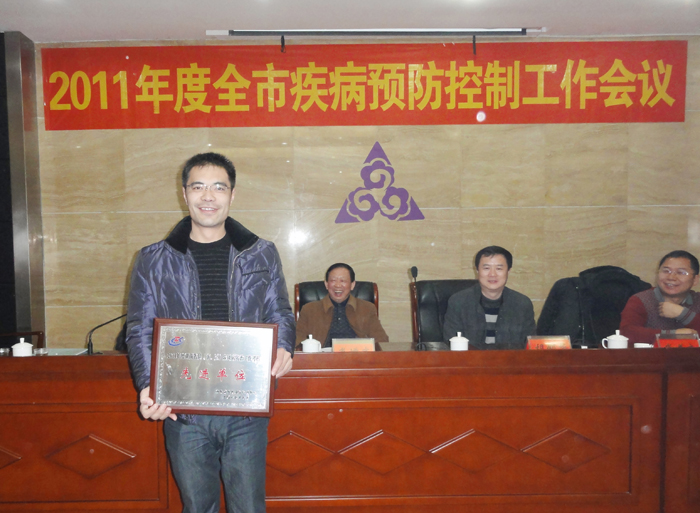 2012年1月12日上午,全市疾病控制和疫苗接种总结会议在紫鑫大酒店召开。各县市区CDC中心主任,分管疾病控制和疫苗接种的分管副主任和科室负责人参加会议。会议由中心党委书记姚湘武主持,中心副主任肖善良作2011年度全市疾病控制及疫苗接种工作总结报告。中心主任胡邵华传达了1月10日在省城召开的全省2011年疾病控制工作总结会议精神,宣读了省疾病预防控制中心《关于表彰全省疾病控制业务管理工作先进单位的决定》(湘疾控[2011]120号;2011年12月31日发),市卫生局分管局长肖增武作总结讲话。