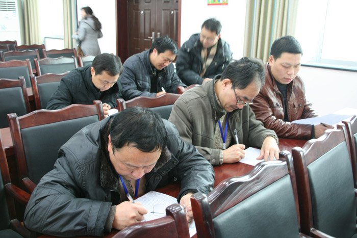 32名实职(含负责人)中层干部和5名高级专业技术人员的述职述廉从上午8时20分开始,一直持续到11时36分。述职结束时,姚湘武书记做总结讲话,对上午的报告会做了简单总结:一是大家准备充分,述职述廉讲得认真,大家听得仔细,会场纪律很好;二是明年的述职报告,要亮成绩,要把科室承担的工作,凡上级有检查的、有评比的,取得的名次和排序讲出来;三是明年的述职,每位科长的述职时间不能超过5分钟,必须只能用5分钟的时间高度概括、高度浓缩你和你的科室一年所做的主要工作,主要成绩,还存在哪些差距,下一年如何努力。这同样是对你能力的考查、能力的磨练、能力的提升。最后,向所有参会人员发放60余份测评表,要求大家就测评表中的“德、能、勤、绩、廉”五个方面对上述37名述职人员逐一分“优秀、合格、基本合格、不合格”四个等级进行测评。最后由人事、党办、监察对收回的测评表统计结果。