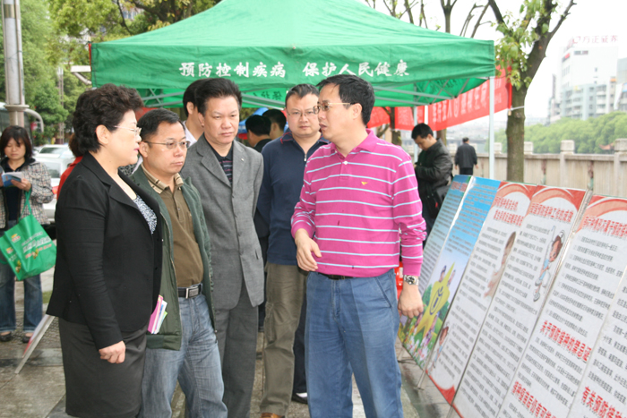 市爱卫办、市卫生局和市疾控中心领导莅临宣传现场为前来咨询的群众解答各类疑问,看望宣传活动一线工作人员,并要求工作人员切实做好宣传活动,耐心、细致、负责地为群众解答各种医学疑问和健康咨询,务必高质量的完成此次宣传活动,提高儿童监护人的预防接种意识。(供稿:杨斌;责编:尧少时)