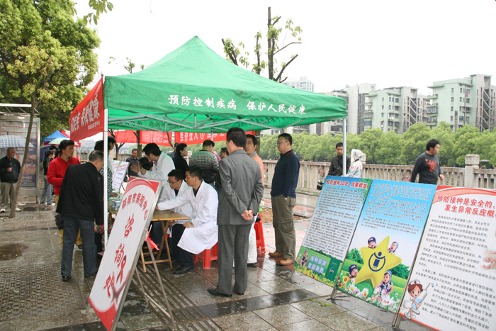 2012年4月25日是第27个全国儿童预防接种日,今年的宣传主题是“接种疫苗,家庭有责”。为广泛宣传预防接种疫苗对儿童预防传染性疾病的重要意义,强调家庭负有主动为儿童获得免疫的接种责任,呼吁家长及时带孩子接种疫苗,号召全社会关注和参与预防接种工作,根据卫生部、省卫生厅和市卫生局的统一安排,我中心于2012年4月25日在邵水西路青龙桥侧开展大规模预防接种宣传活动。