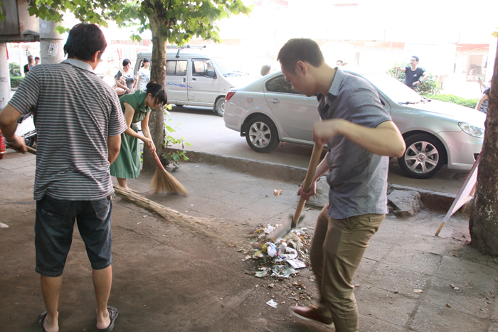 市疾控中心把上街清扫人员落实到每个科室共安排82名干部职工参与,主要对宝庆东路—东大路的市容环境卫生进行为期1天的集中清扫。广大干部职工顶着烈日,发扬不怕苦,不怕累的精神,拿着扫帚、铁铲、铁夹等工具对人行道上及绿化带的垃圾、渣土、杂物进行了清除;对街道路旁暴露性垃圾和卫生死角进行了清扫;对破损残缺广告牌匾和有碍市容观瞻的悬挂物进行了清理;同时耐心劝阻市民不要乱扔垃圾、随地吐痰等不文明行为。此次活动,共清理垃圾死角几十处,清理垃圾10余吨。