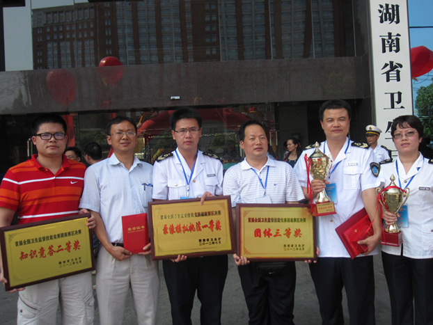 7月28日,由卫生部和全国总工会举办的首届全国卫生监督技能竞赛湖南赛区在长沙拉开帷幕。本次湖南赛区竞赛由省卫生厅和省工会联合举办,全省14个市州卫生行政部门组织辖区卫生监督、疾控机构的80多位选手参加比赛。比赛分闭卷考试、知识抢答、录像摸拟执法纠错、现场快检、实验室盲样检测考核五个部分。经过两天激烈的角逐,市疾控中心参赛选手获得可喜成绩。