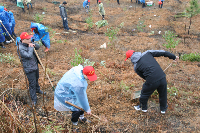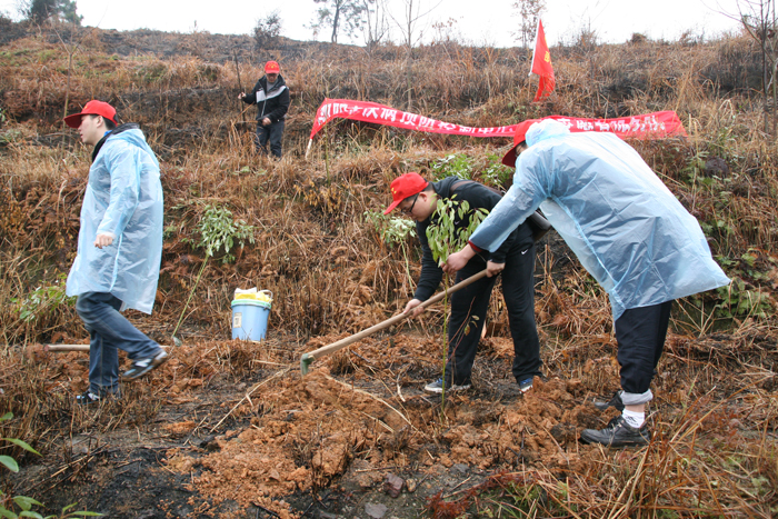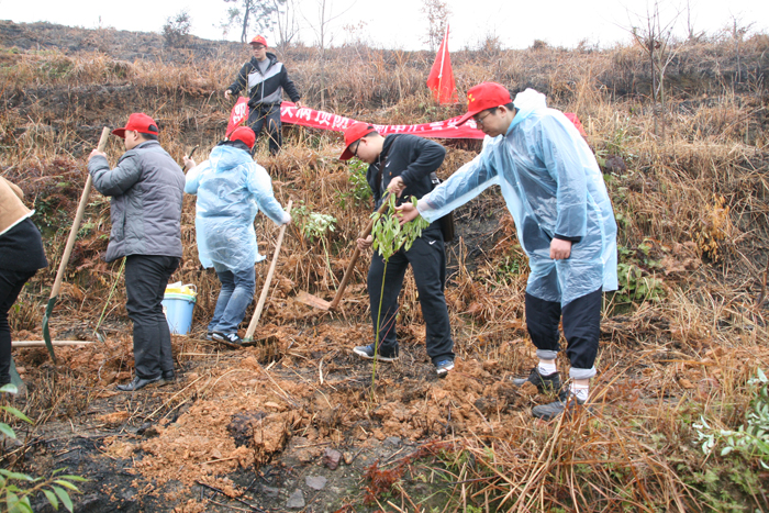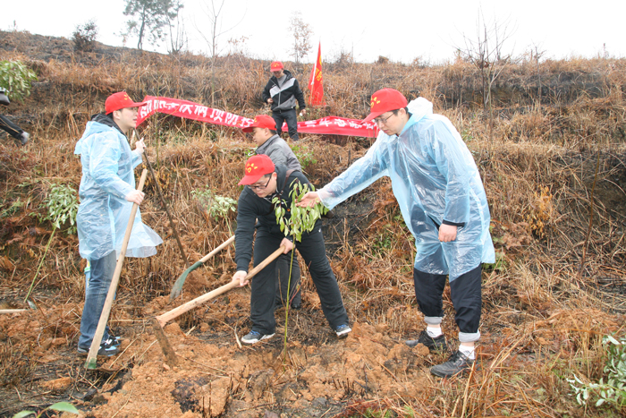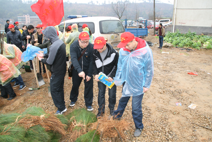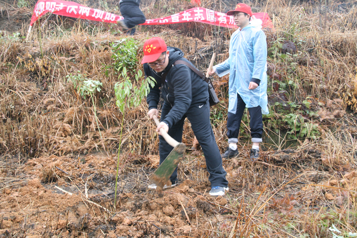 上午8点,十几名青年志愿者在单位门口集合,带上锄头、铲子和水桶等植树工具赶赴植树现场。到了植树场地后,虽然气温很低,且下着小雨,但志愿者们热情高涨,分工、分苗、整地、浇水,相互配合,干劲十足,将一颗颗充满生机和希望的树苗植入地里,为邵阳城边新添一片绿。现场气氛非常热烈,到处洋溢着青年志愿者们的欢声笑语。