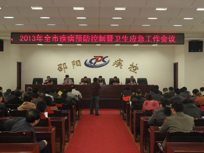 2013年3月15日,全市疾病预防控制暨卫生应急工作会议在市中心八楼会议室召开。各县市区卫生局分管副局长、全市疾控中心主任、皮防所所长;市卫生局分管副局长、疾控科科长及应急办主任;市CDC在家的班子成员及中层以上干部参加。会议由市卫生局副调研员刘雅主持,胡邵华主任作工作报告,肖增武副局长做总结和指示,肖善良副主任宣读表彰通报。