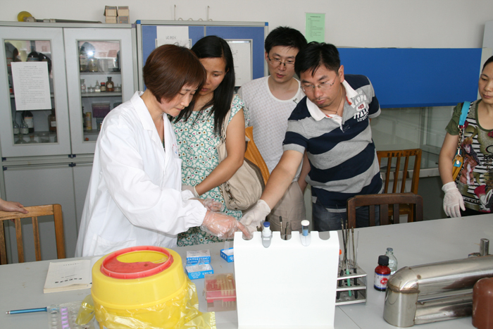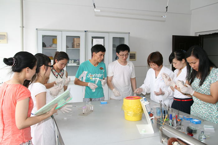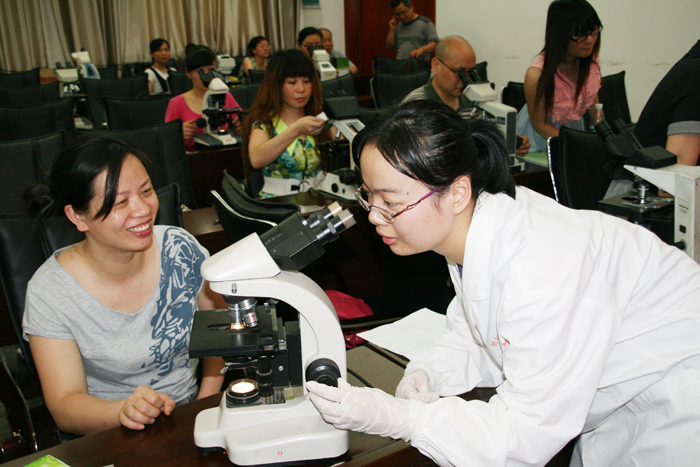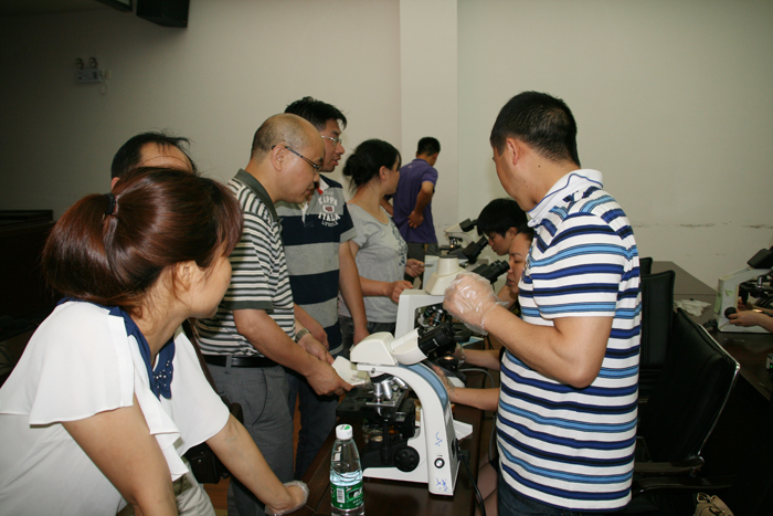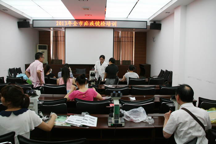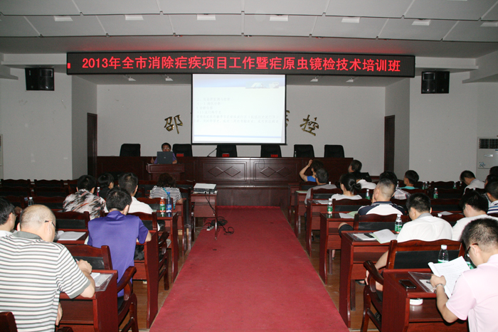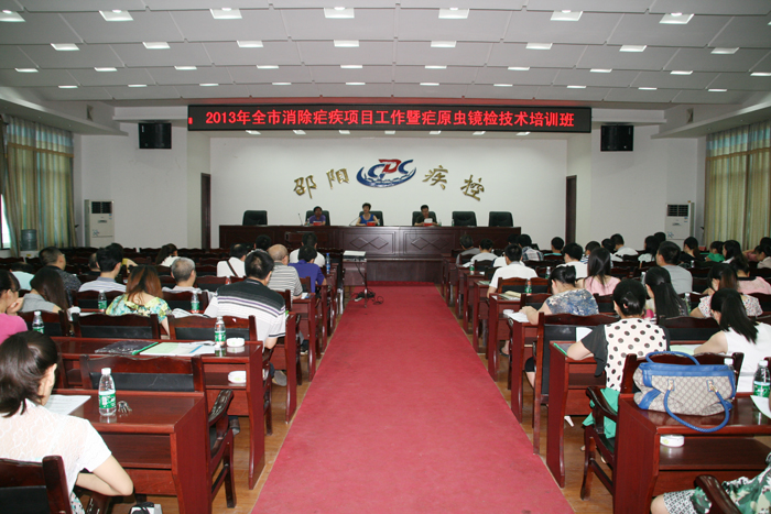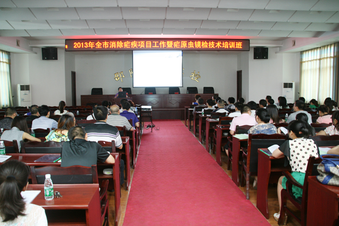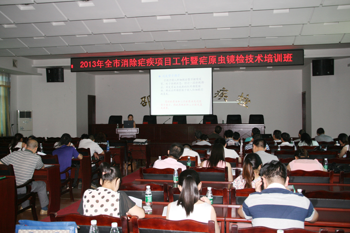 为实现限期消除疟疾目标,继2012年中心举办全市消除疟疾师资培训班后,2013年6月18日至20日,市疾控中心再次举办全市消除疟疾工作暨疟原虫镜检技术培训班。全市各县市区疾控中心、人民医院、中医院以及市中心医院、市第一人民医院、医专附属医院、市中医院、市中西结合医院均派一名医师和检验人员共70多人参加培训。培训会议由市疾控中心分管副主任舒松凡主持,市卫生局分管疾控的副调研员刘雅到会讲话。为确保培训质量和效果,市疾控中心特别邀请了省CDC地寄科负责人、主任医师李正祥授课,并采用理论和实践相结合的方式。鉴于我市多年来已无本土疟疾,偶发的疟疾均为输入性。各级医疗单位、疾控中心接触到的典型疟疾病例极少,临床诊断水平,特别是从病人血液涂片中镜检发现疟原虫的能力明显不足,大部分年轻检验人员甚至从未看到过典型的疟原虫血片,涂片制作技术非常生疏。会议通知要求参培检验人员自带显微镜。参培检验人员分二组,一组镜检阳性疟原虫血片,另一组学习如何正确制作血涂片。市疾控中心微生物检验科派出多名专业人员现场指导和带教。