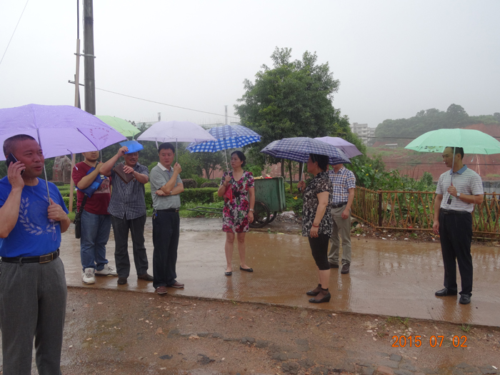 桔园社区是市疾控中心创“国卫”工作帮扶单位,自5月份联点社区创建工作启动后,市疾控中心立即安排专人蹲点督促、指导创建工作。一个月以来,在各方的努力下,创建工作进展顺利。为进一步推进桔园社区的创建工作,7月2日8:30分市疾控中心主任胡邵华、纪委书记陈立红陪同市创建办郭小平主任、谢小军副主任及大祥区创建办肖铁等领导冒着瓢泼大雨深入桔园社区,现场督促、指导创建工作。