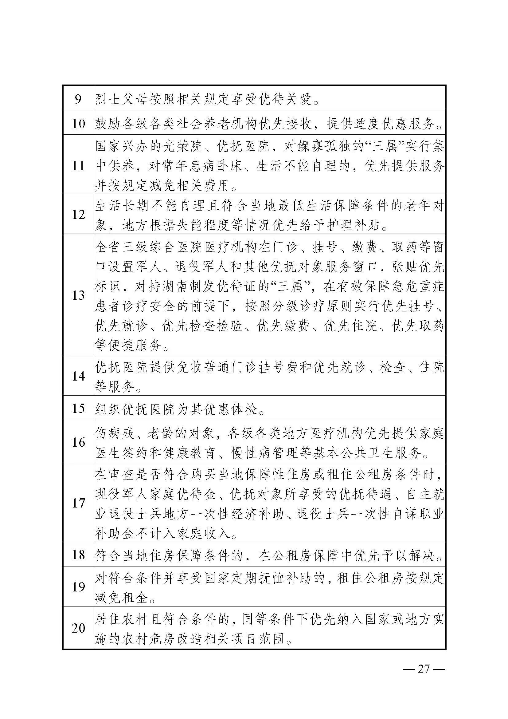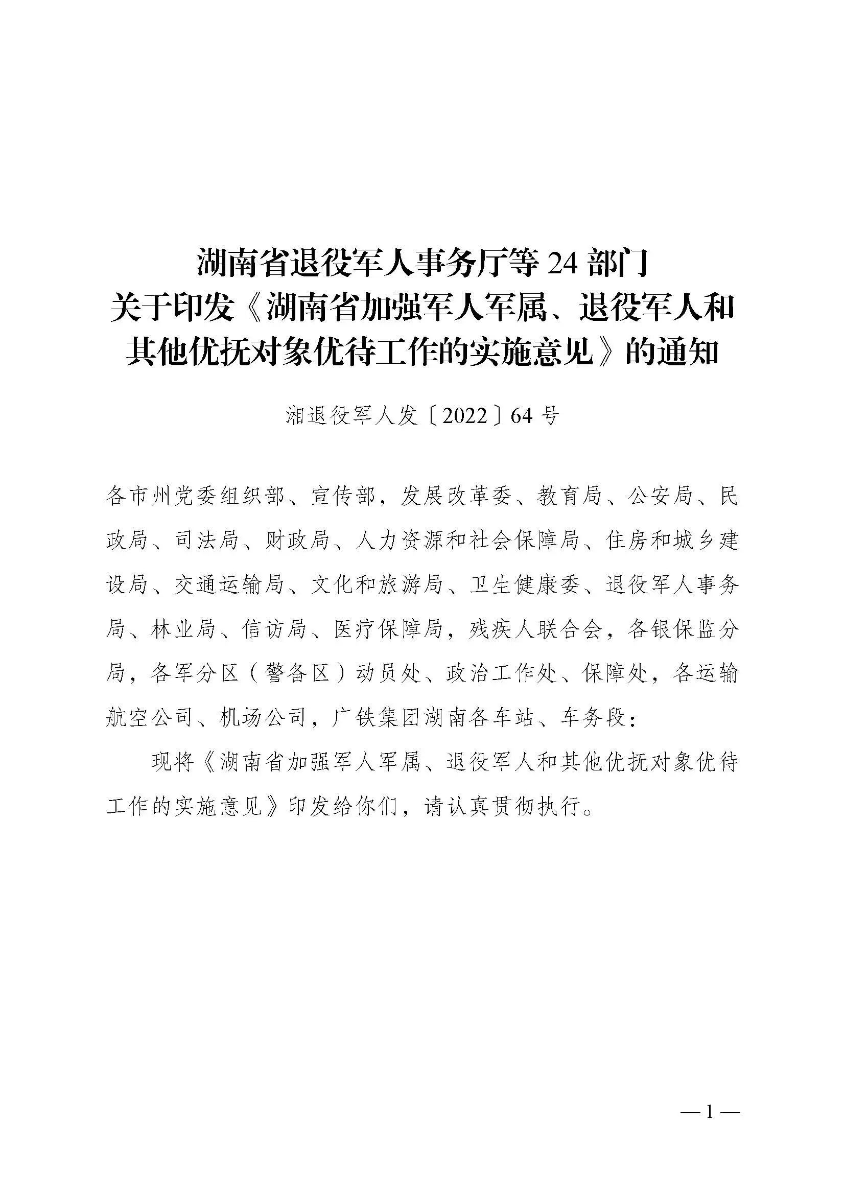 湖南省退役军人事务厅等24部门关于印发《湖南省加强军人军属、退役军人和其他优抚对象优待工作的实施意见》的通知