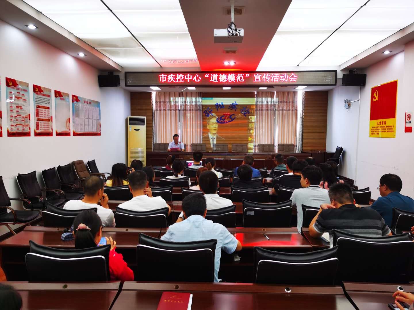 为培育和践行社会主义核心价值观,弘扬抗疫精神,广泛开展向道德模范、时代楷模和"身边好人"学习活动, 8月20日,邵阳市疾控中心在五楼会议室举办道德模范、抗疫先进典型事迹专题展览宣传活动会。