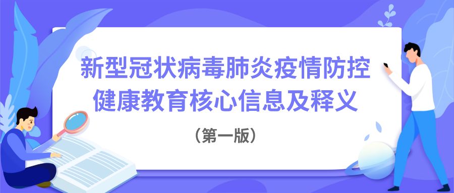 按照国家卫生健康委的统一部署,为了进一步做好新冠肺炎疫情防控健康教育工作,在宣传司的指导下,中国健康教育中心组织专家,围绕当前防控工作需要,参照国家卫生健康委员会有关政策文件和技术方案,在总结前期工作基础上,组织编写了新冠病毒肺炎疫情防控健康教育核心信息及释义(第一版)。