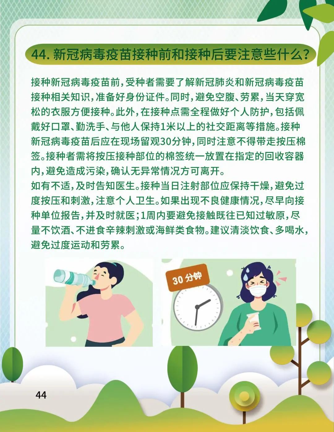 接种新冠病毒疫苗前,受种者需要了解新冠肺炎和新冠病毒疫苗接种相关知识,准备好身份证件。同时,避免空腹、劳累,当天穿宽松的衣服方便接种。
