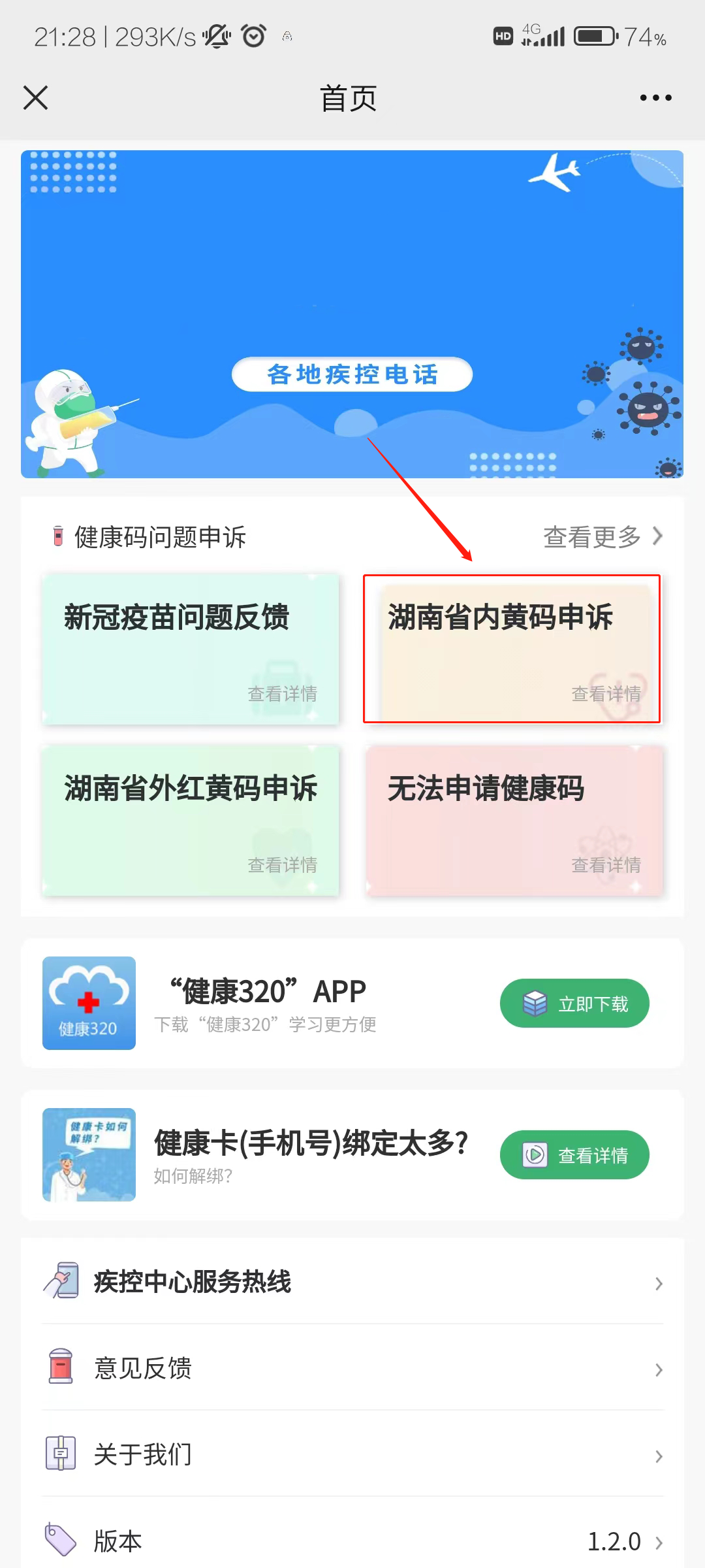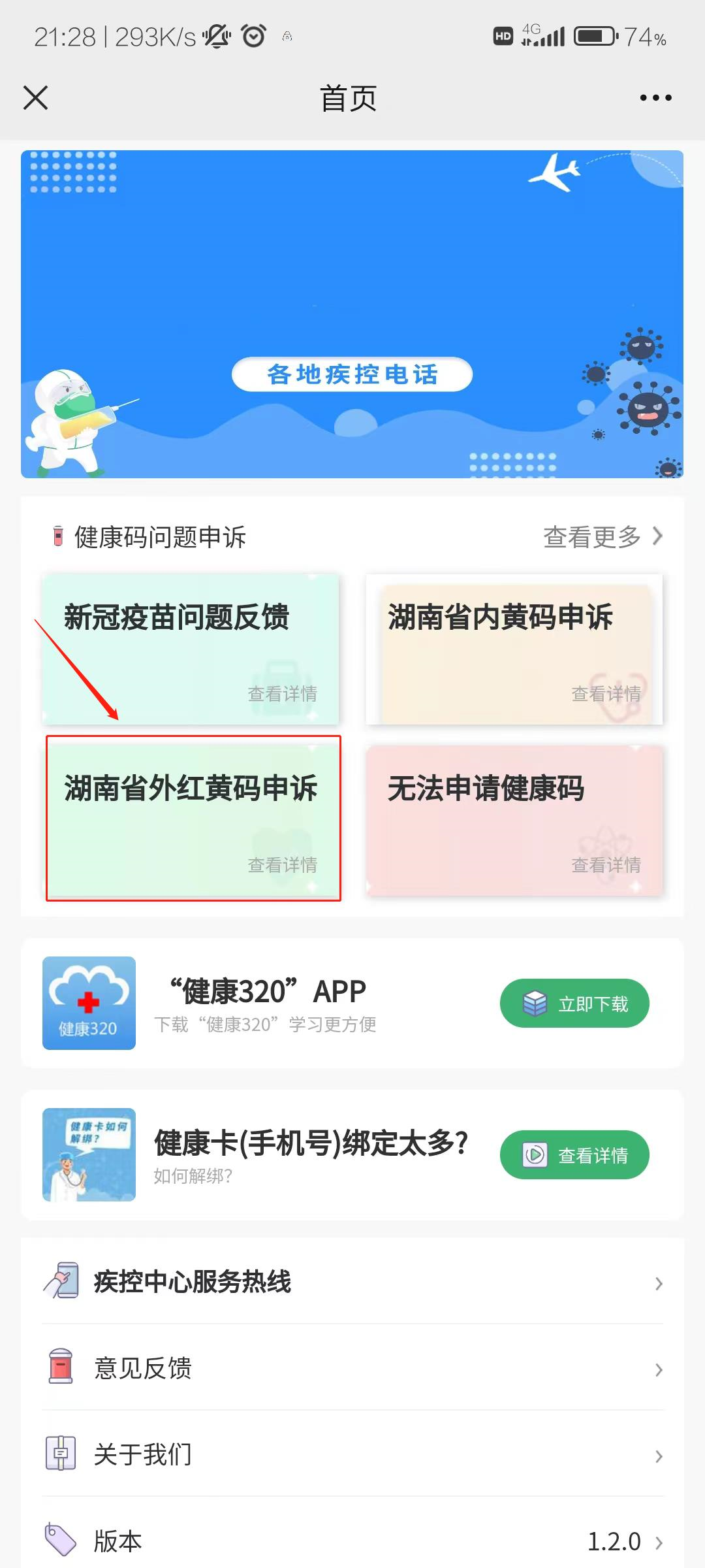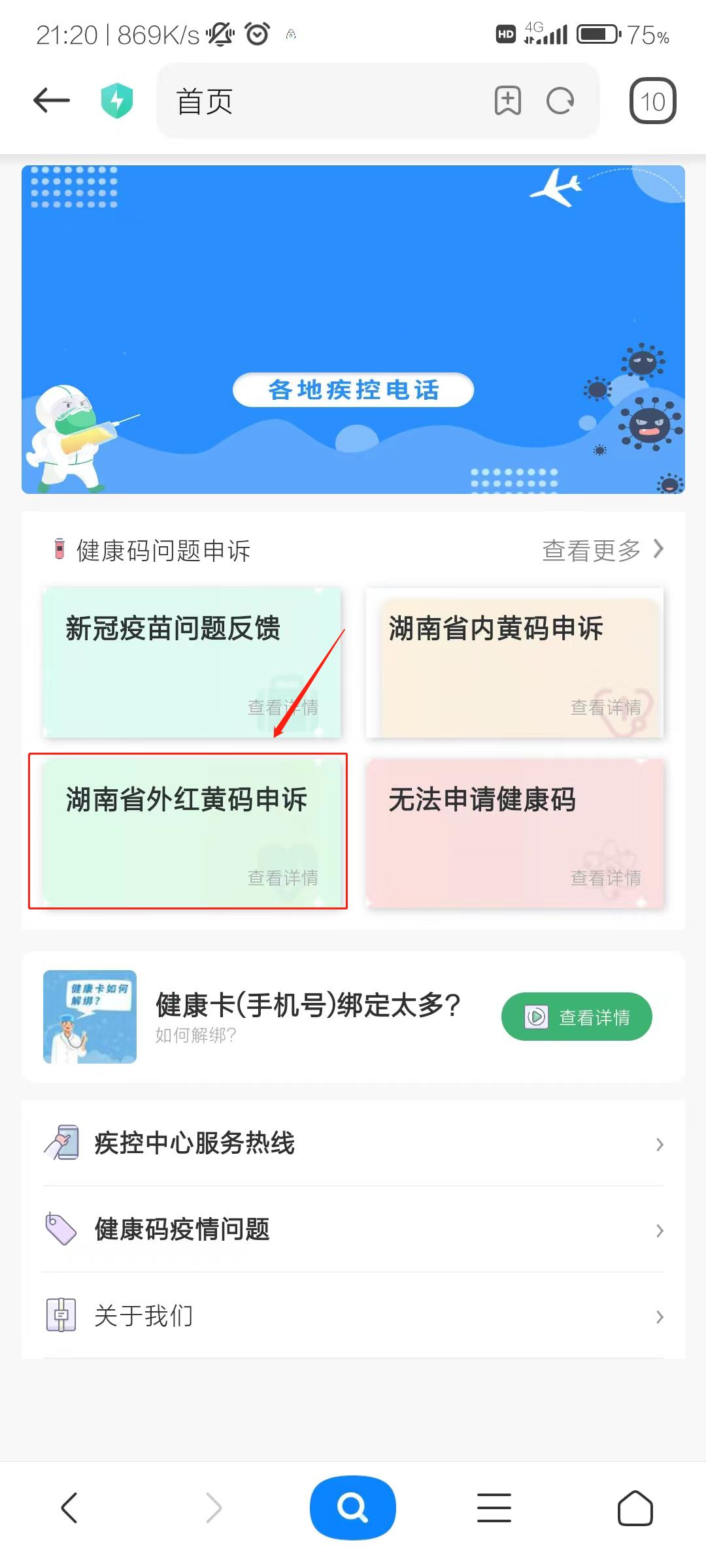 第二步点击“湖南省内 、外红黄码申诉”