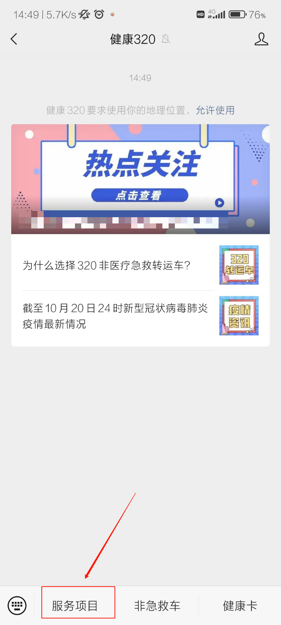 第一步:关注“健康320”微信公众号,点击进入健康320平台