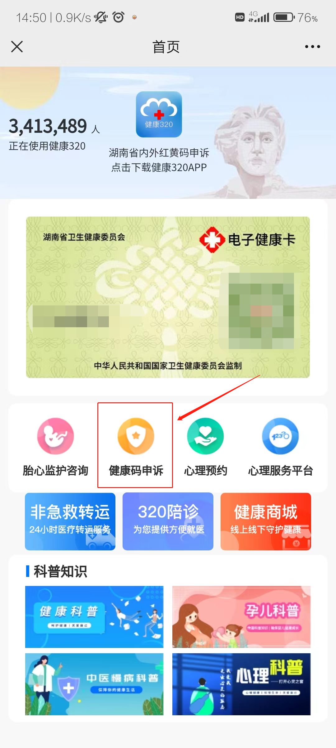 1、“健康320”公众号申诉