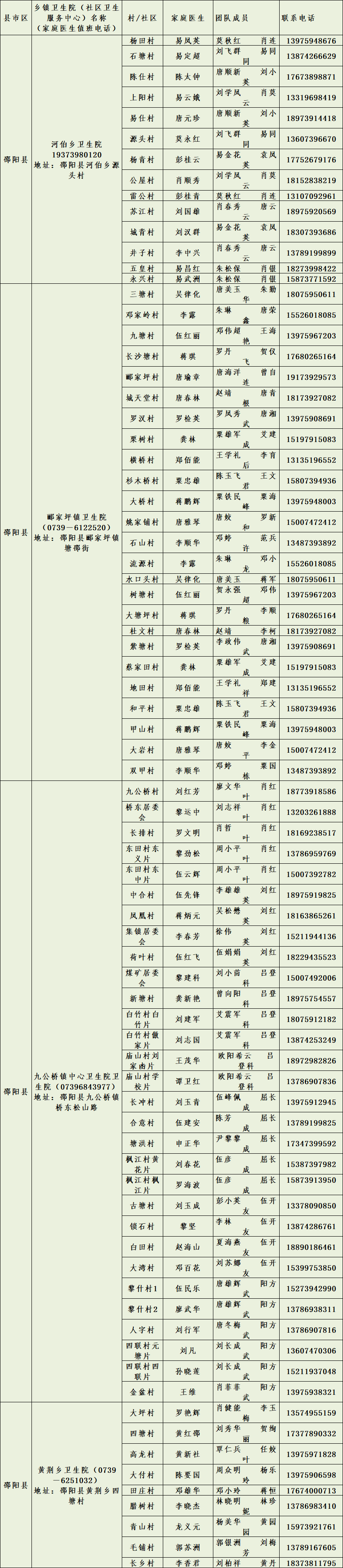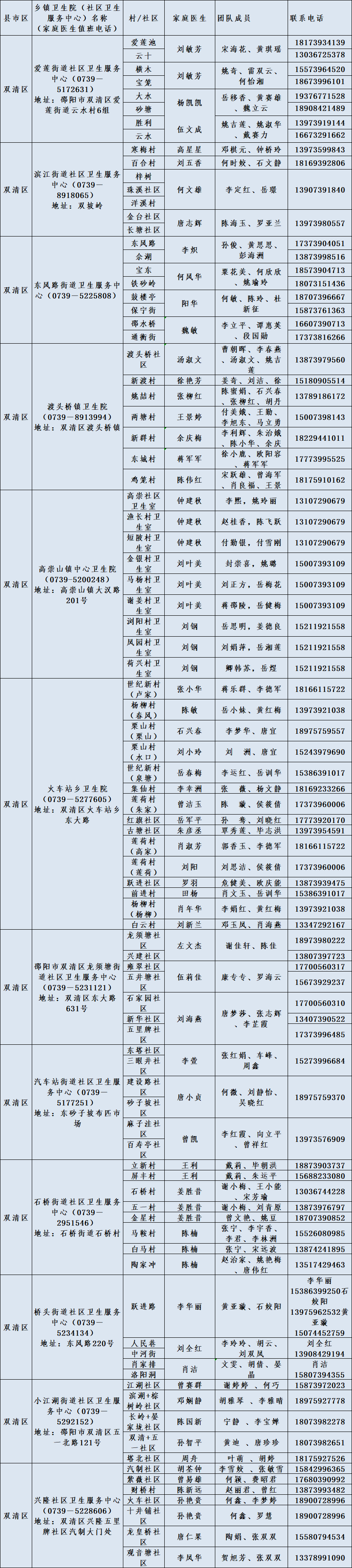 邵阳市家庭医生服务联系方式
