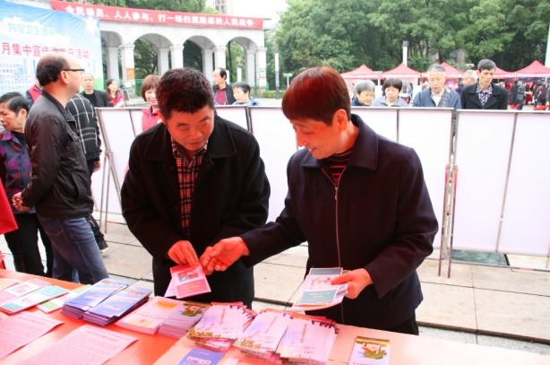 活动现场,为积极倡导健康生活新方式,市疾控中心健康教育工作人员发放“中国公民健康素养”手册及 “三减三健”(减油、减盐、减糖;健康体重、健康口腔、健康骨骼)核心信息、“科学健身知识”图解折页和“爱国卫生健康宣传手册”等1000余份。现场摆设健康咨询台,对市民提出的健康生活方式等问题进行细心解答、互动交流,并给予科学健康的建议。为提高活动参与性和知识知晓率,还在“邵阳市疾控中心”网页和微信公众号平台编辑上传宣传活动内容,以丰富多样的形式进行广泛宣传,以达到预期宣传效果。