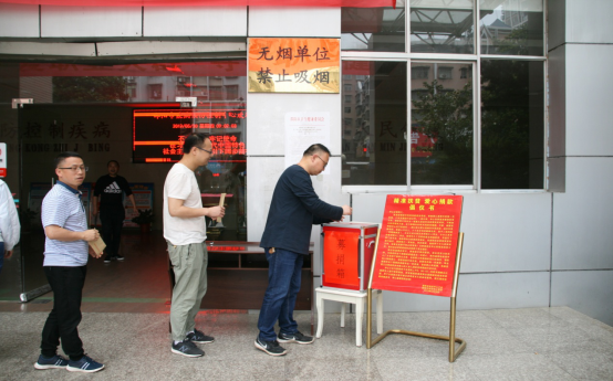 5月30日上午,中心工会联合各支部、团委在办公楼一楼大厅开展“精准扶贫 爱心捐款”募捐活动,为身患重病的单位结对帮扶对象—洞口县大屋乡高峰村村民杨希轩捐助善款10360元。