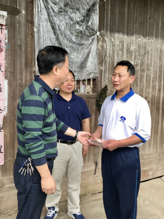 5月31日,中心班子成员胡邵华、肖善良带领职工代表赶往洞口县大屋乡高峰村,将收集的善款及时送到杨希轩家里,解决他家的燃眉之急,并嘱咐他保重身体,积极面对生活。看到市疾控中心干部职工、驻村干部及村委会如此关心他及家人的生活,杨希轩激动万分,眼睛里闪动着感激的泪花,并连声道谢。