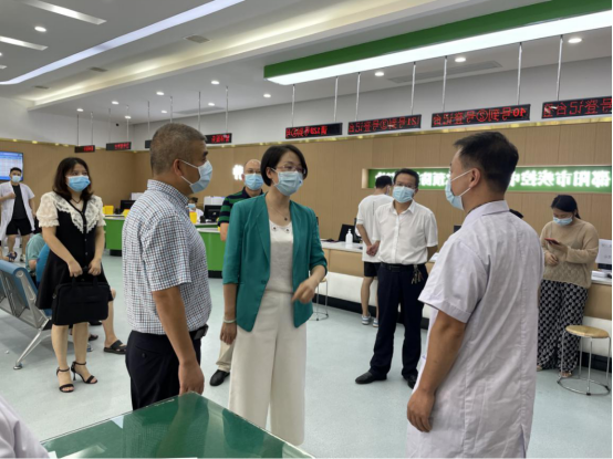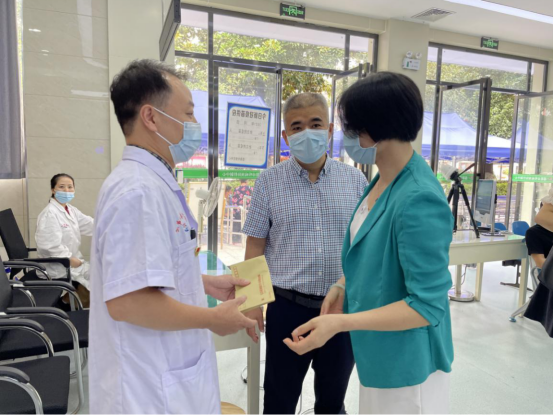 8月18日下午,值临“中国医师节”到来之际,市卫健委党委书记黄海蓉、副主任喻坤一行来到市疾控中心数字化预防接种门诊,看望慰问一线工作者。并为医师代表邓继红副主任医师送上慰问金,表达节日的祝福和亲切的问候。