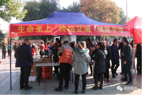 活动现场,邵阳市疾控中心组织艾滋病防治科、信息科、第三党支部等部门的骨干力量,通过开展义诊、悬挂横幅、设置宣传展板、发放宣传资料等方式,向过往市民宣传防治艾滋病相关知识,使他们对艾滋病的传播途径、防治措施和国家政策等有进一步认识。